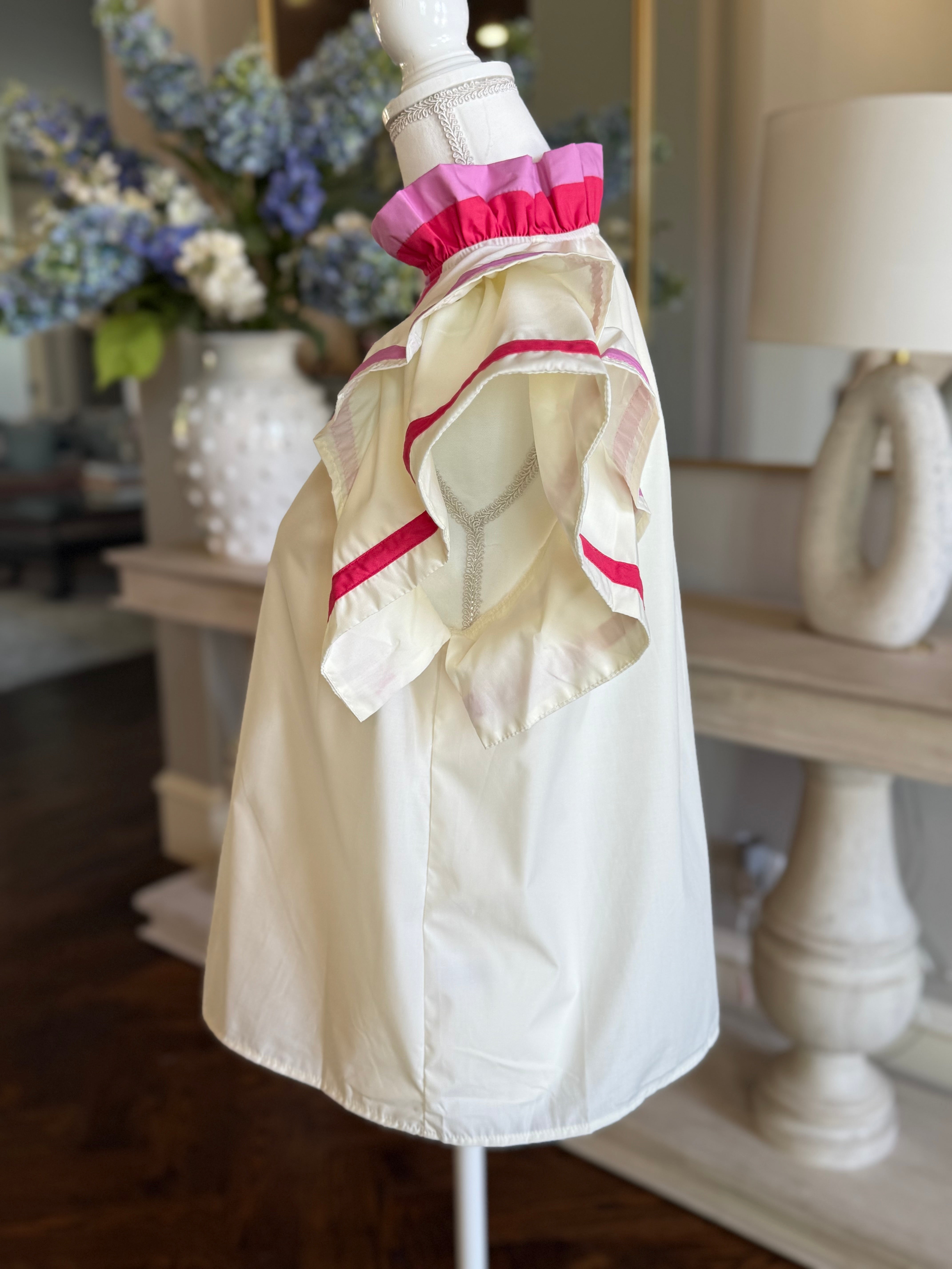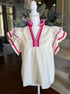 The Rylie Blouse brings a playful twist to your wardrobe with its charming split neckline and flirty tiered sleeves. Featuring a delicate ruffle mock collar, this 100% cotton blouse feels light and comfortable without lining, while staying perfectly opaque. True to size and effortlessly stylish, it’s ready to brighten up any outfit with a touch of fun flair.