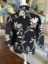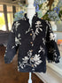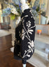 Embrace cozy elegance with the Vonda Top in black. This charming 3/4 sleeve button-down features a delicate cream floral black jacquard pattern and a ruffled mock neckline, adding a refined touch to your fall and winter wardrobe. Crafted from 100% polyester, it offers comfortable wear and easy care. Perfect for layering or wearing on its own, this top brings effortless style to any occasion.